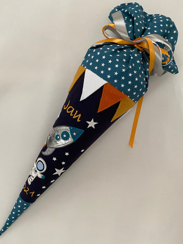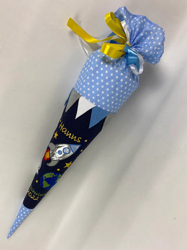 Schultüte Rakete Weltraum aus Stoff inkl. Papprohling 70 cm oder 85 cm ST049 & ST050