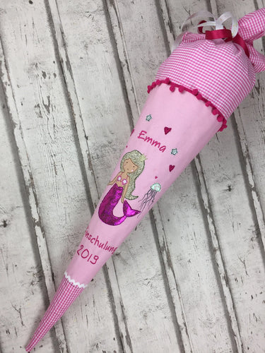 Schultüte Meerjungfrau aus Stoff mit Glitzer inkl. Papprohling 70 cm oder 85 cm ST037 & ST038