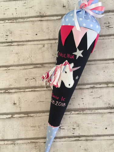 Schultüte Einhorn aus Stoff mit Glitzer inkl. Papprohling 70 cm oder 85 cm ST035 & ST036